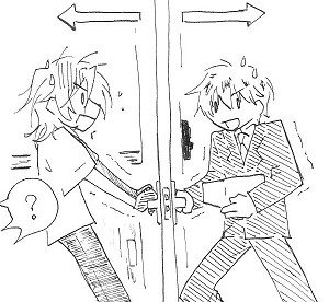 ヘンな人は入れません、ドアを閉める!駄菓子菓子、阻まれる!!